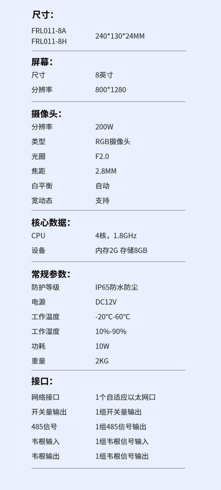 8寸人臉識別